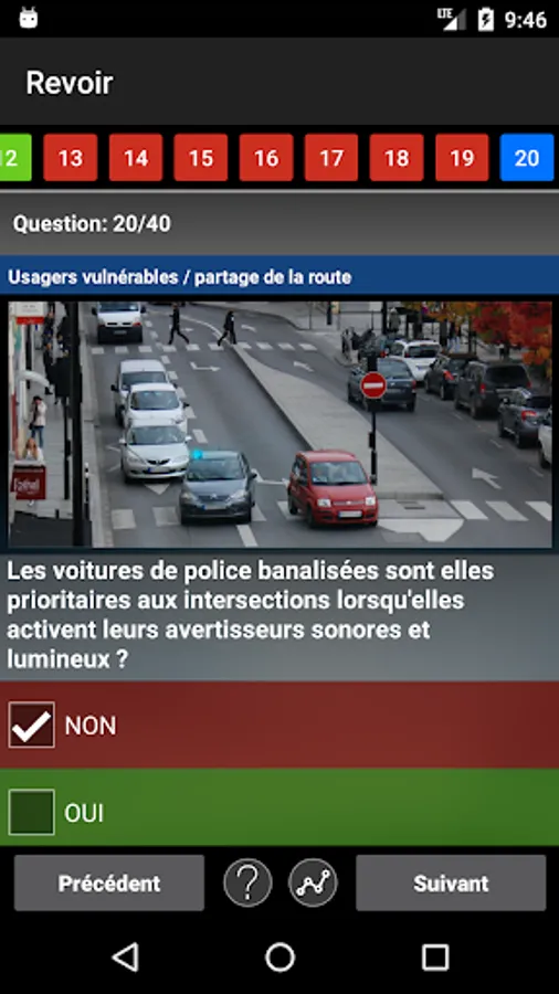 The application saves the answers you have given to each question and offers the best in terms of statistics since you have access to both global statistics and history details of bad and good answers.