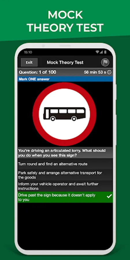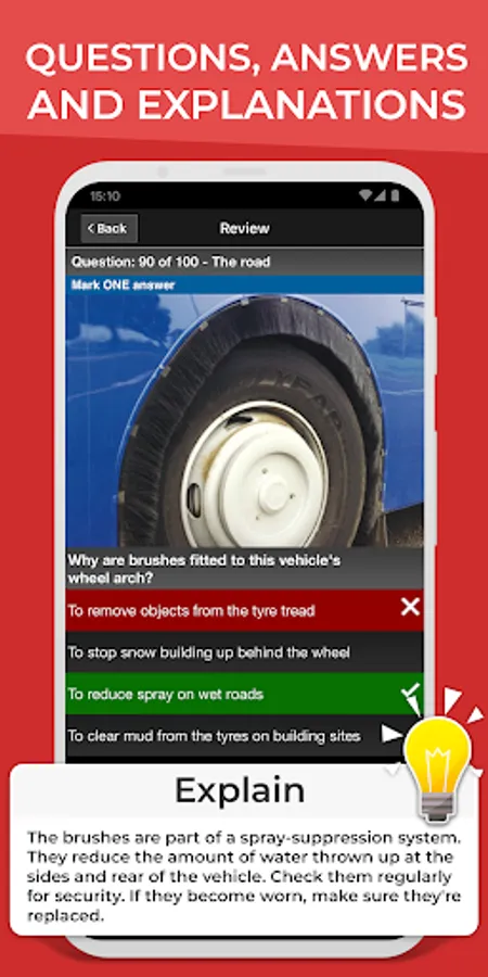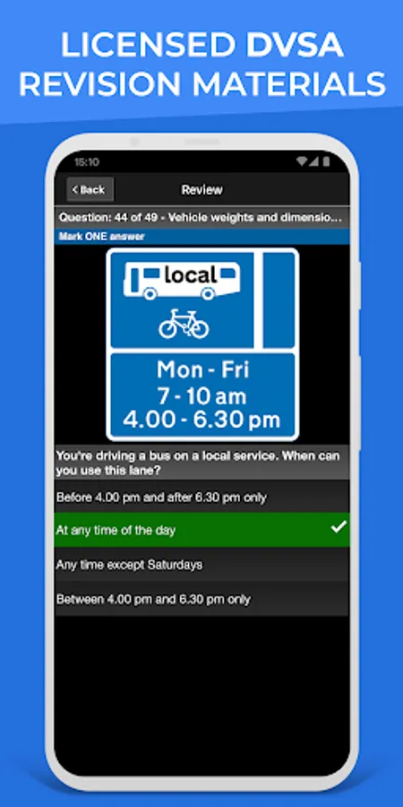 Test your knowledge by practicing by categories. You can select one or more categories to practice. You can also perform rapid tests for 10, 20 or 30 questions. In this section there is no time limit and you can see the explanation of the DVSA before selecting the correct answer.