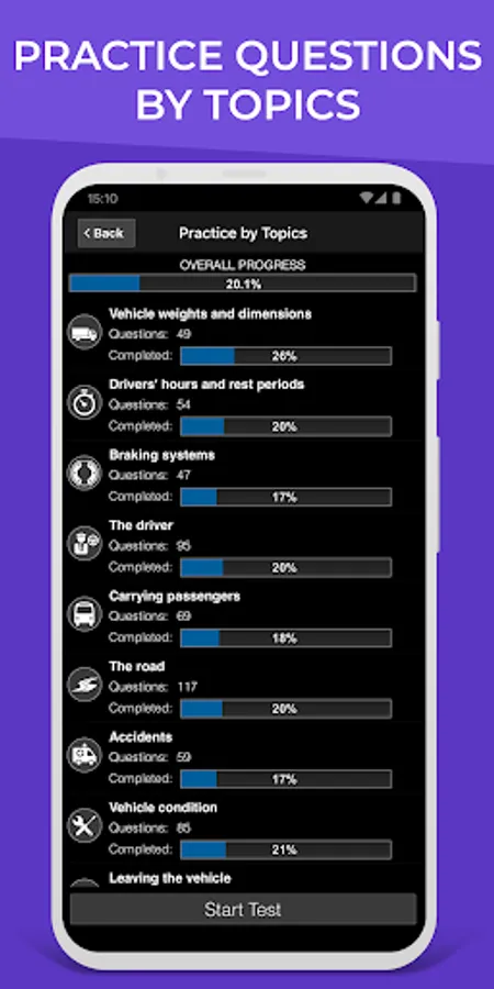 - Track and monitor your progress. Analyse your performance and find out when you have reached test standard.