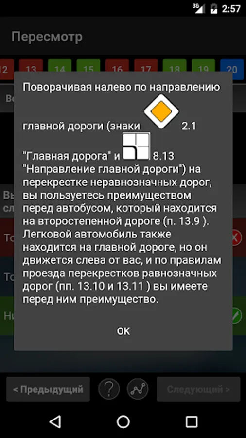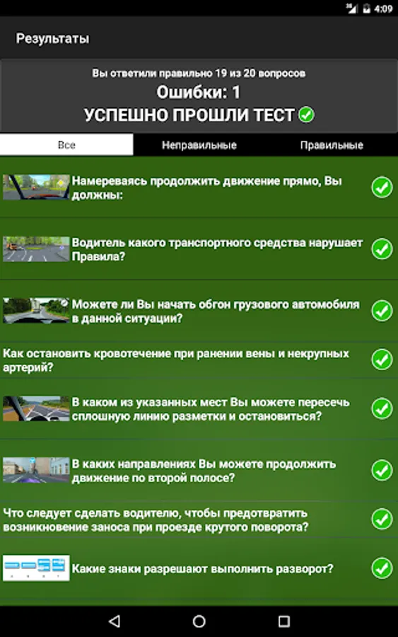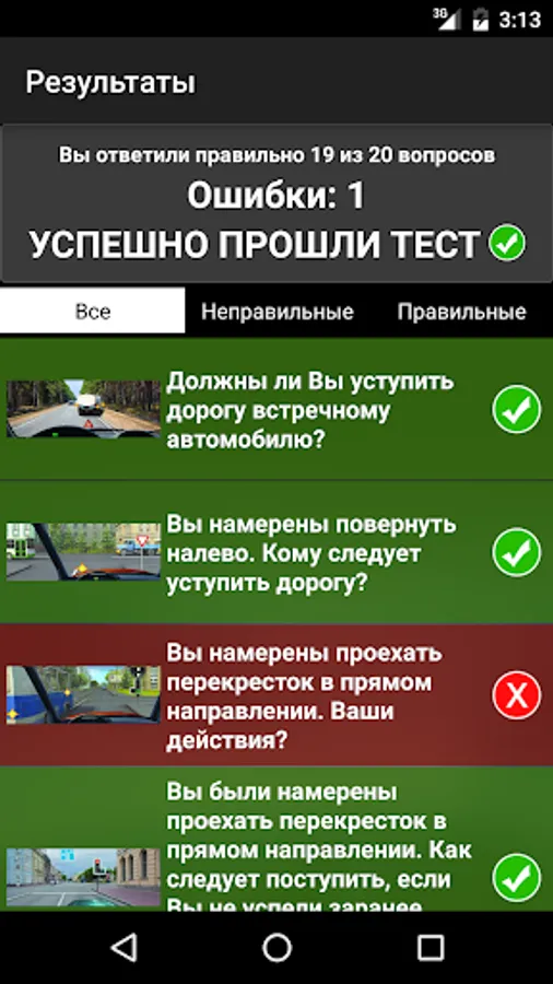 Do all traffic rules tests, including all questions. After conducting and correcting the test, you can see your mistakes and an explanation for each question.