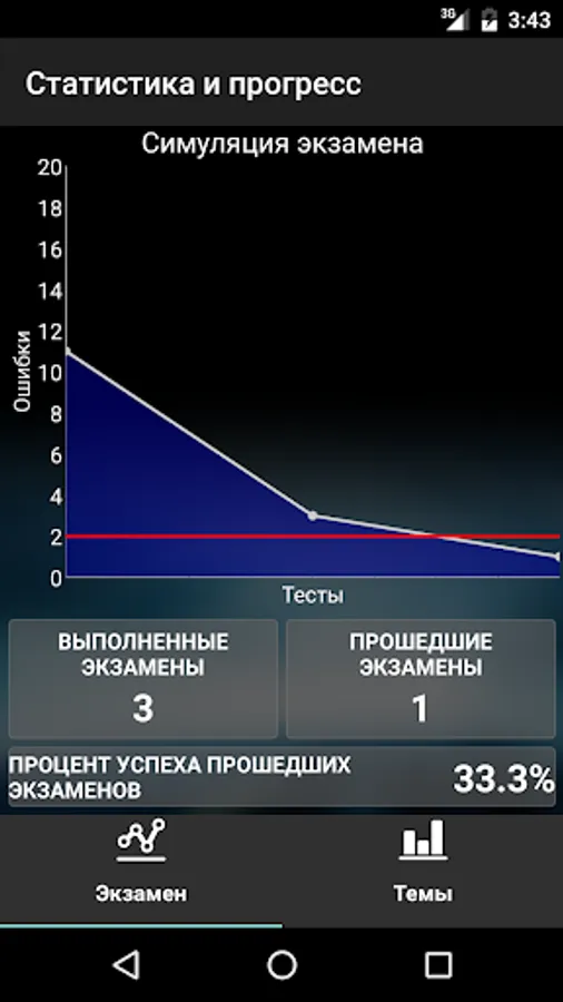 The application saves data not only of each completed test, but also of each question. We offer the best statistics systems to help you find out the real percentage of knowledge on each topic.