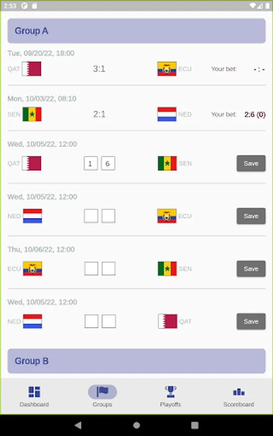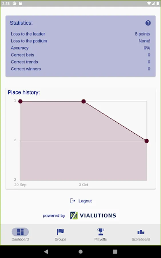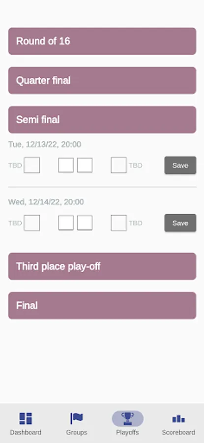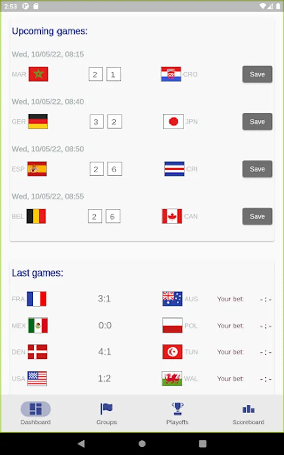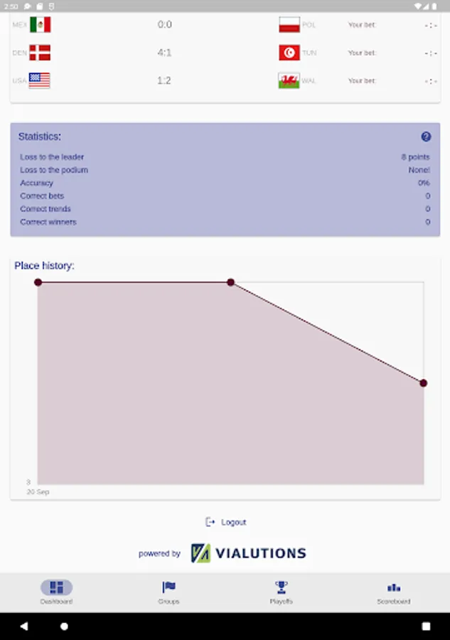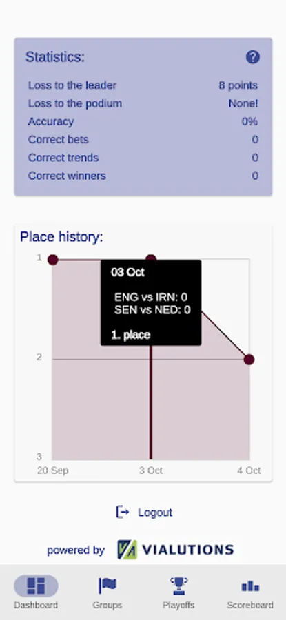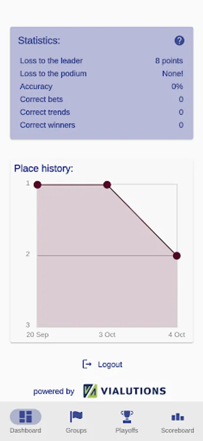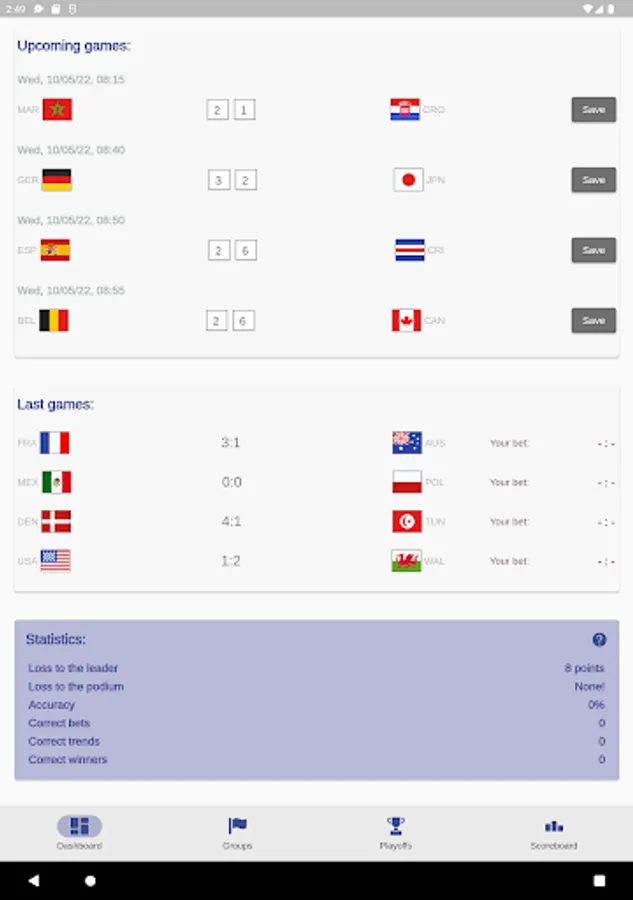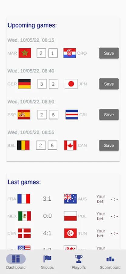 In brief - each user can enter the predicted match result. After the end of the game, the administrator introduces the result of the games to the system and the program automatically counts the points and updates the ranking.