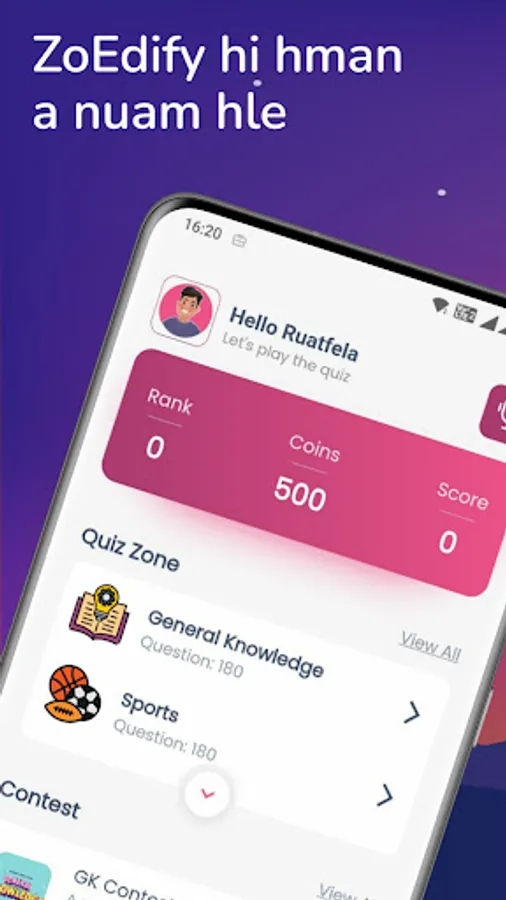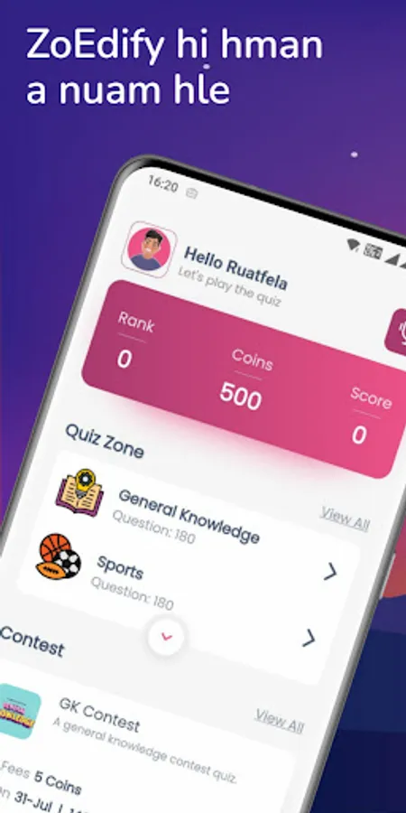 Quiz Zone ah hian Category hrang hrang (GK, Sports, History, Politics, Maths, Bible leh a dang tam tak) dah a ni a, level hrang hrangah dah niin a chhang dik chuan points an khawl a, a ti tha te tarlan nghal vek an ni.