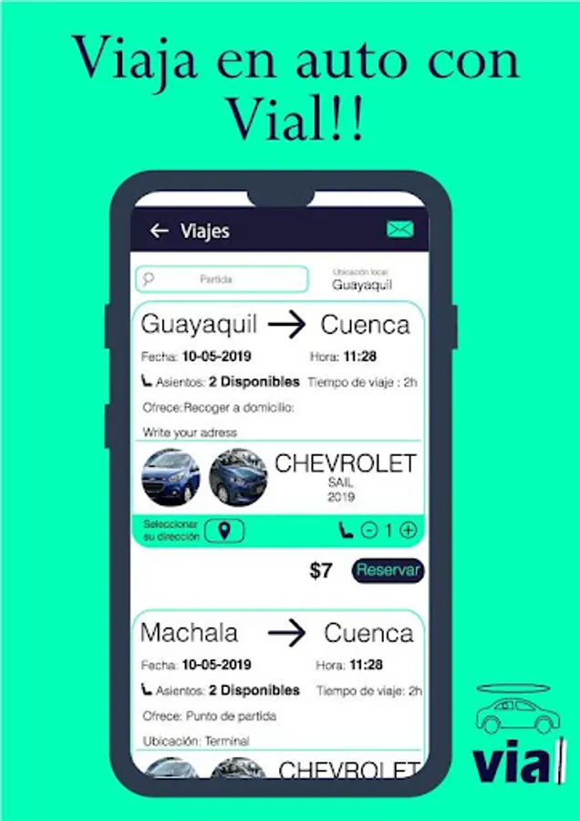 Vial, the application that allows you to find cars to travel to another city, travel comfortably, find a vehicle, book and go.
