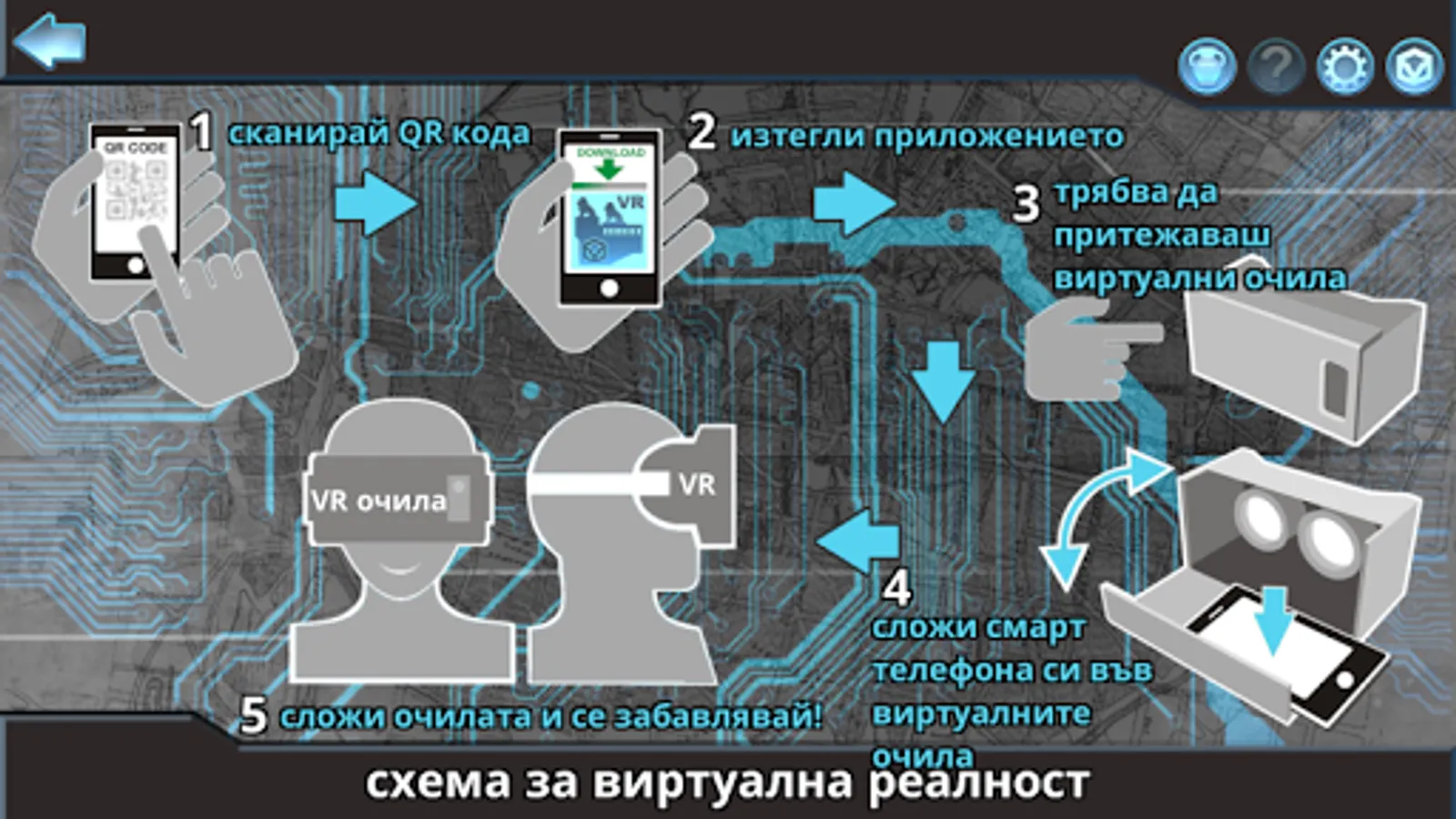 To get the most of your application, please use Google Cardboard or similar set for your phone!