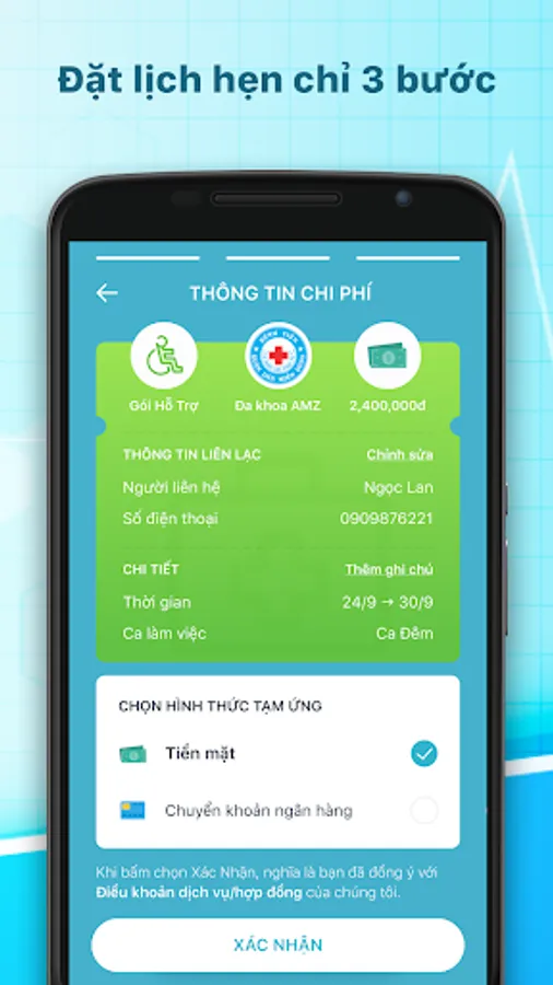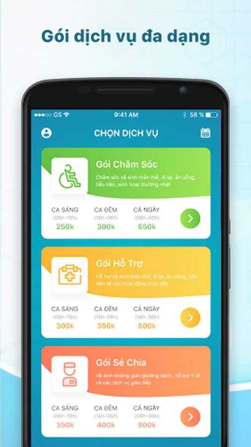 Application called patient care - This app provides you care staff, substitute for you to take care of the patient, support you with daily work, We offer many service packages for most popular to choose.