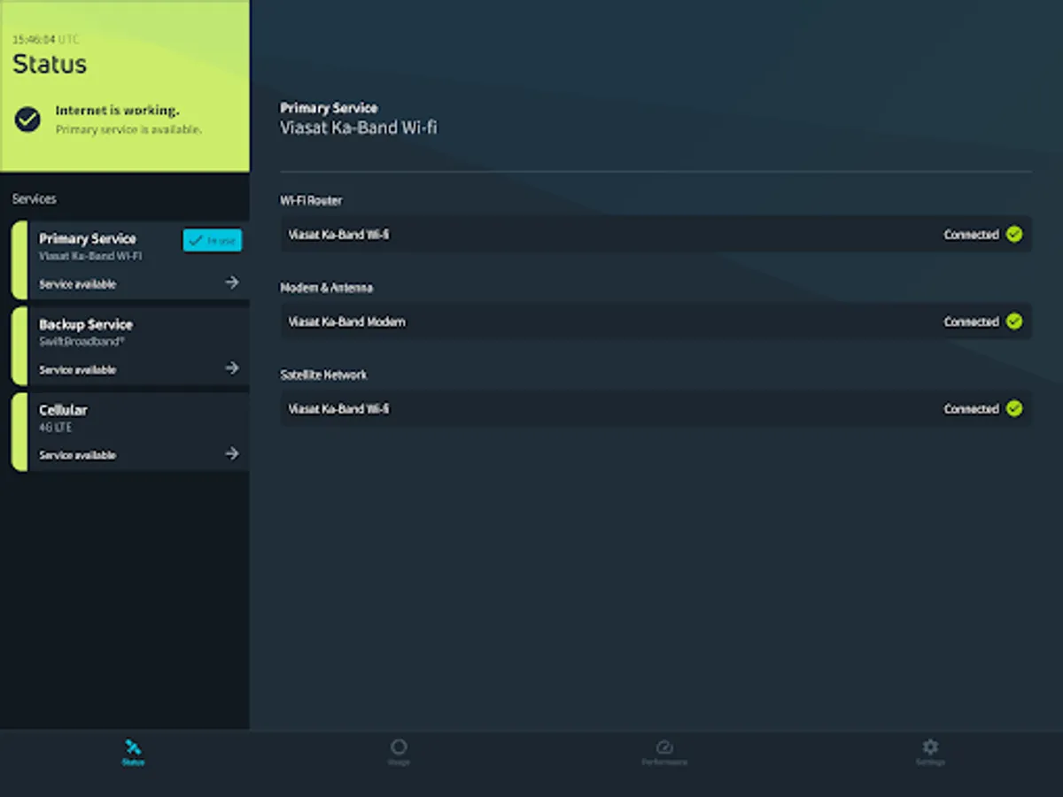 Crew Central for BizAv enables pilots, flight attendants and other crew members to effectively monitor and manage Viasat’s Inflight Connectivity Internet Services while in-flight. When paired with a compatible in-cabin router, the app provides real-time monitoring status of the Viasat services as well as other cabin connectivity services (if any) available on the aircraft.