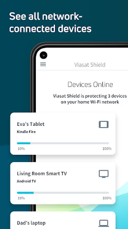 The Shield service is available for all of our Viasat internet customers. Download the app in seconds for a view into device and security threat information on your home internet and Wi-Fi network.