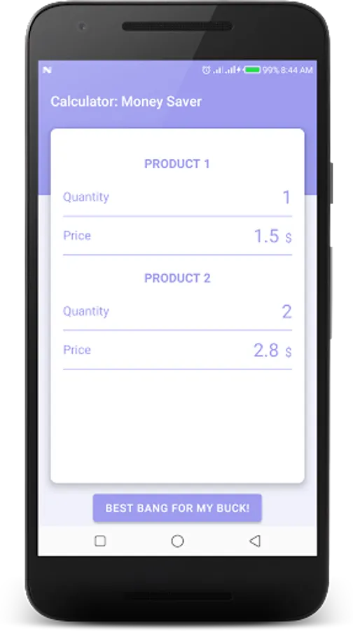 Imagine that you're in a shop and you get confused trying to decide the best deal between two products with slightly different quantities and prices, then this calculator is for you. Money Saver helps you get the best value even down to the smallest dime!
