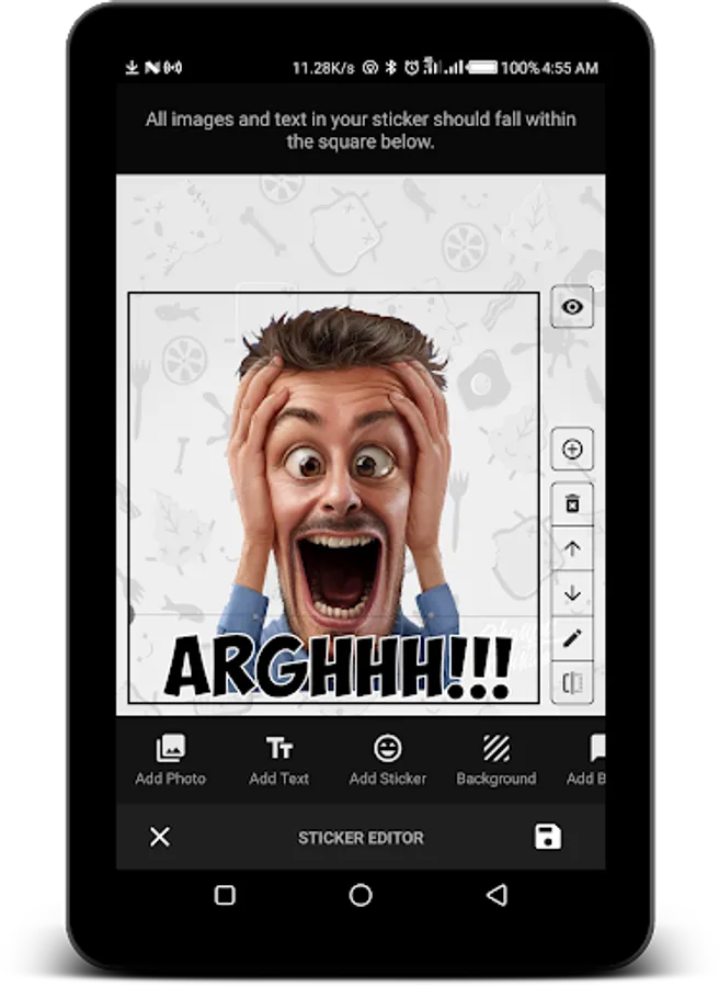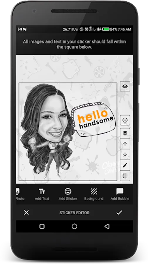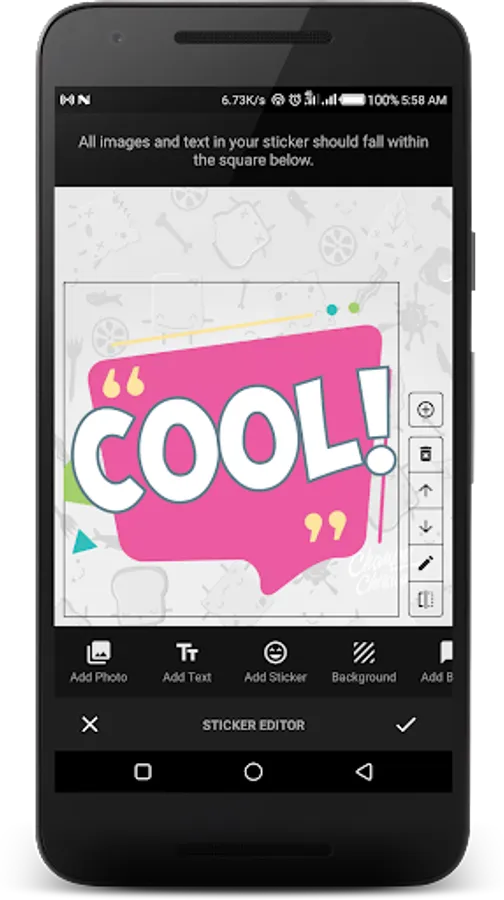 4. When you are done making your sticker in the sticker creator, click the ✔️button to save your sticker to the sticker pack.