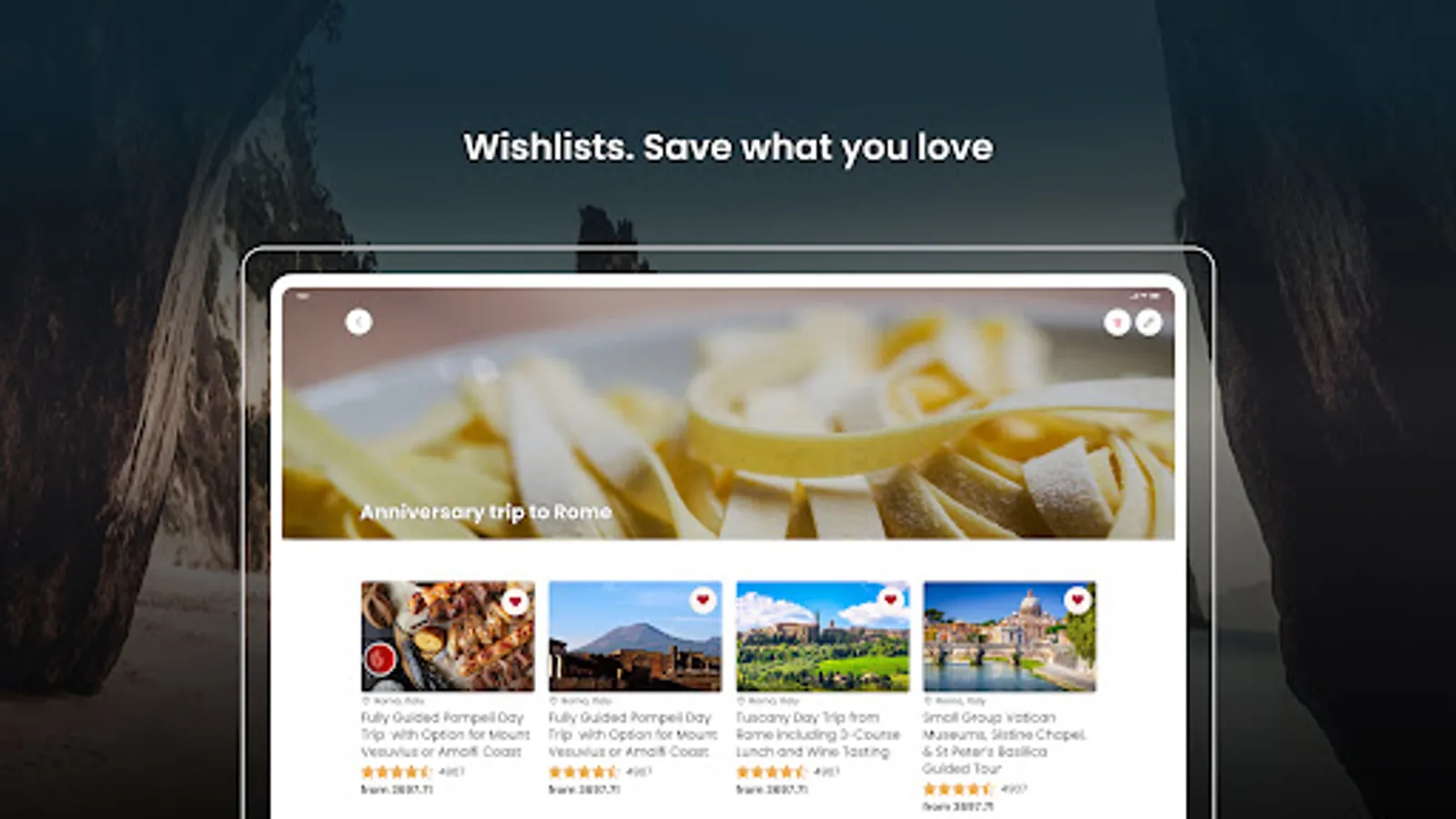 Create a wishlist of all tours & activities you want to book