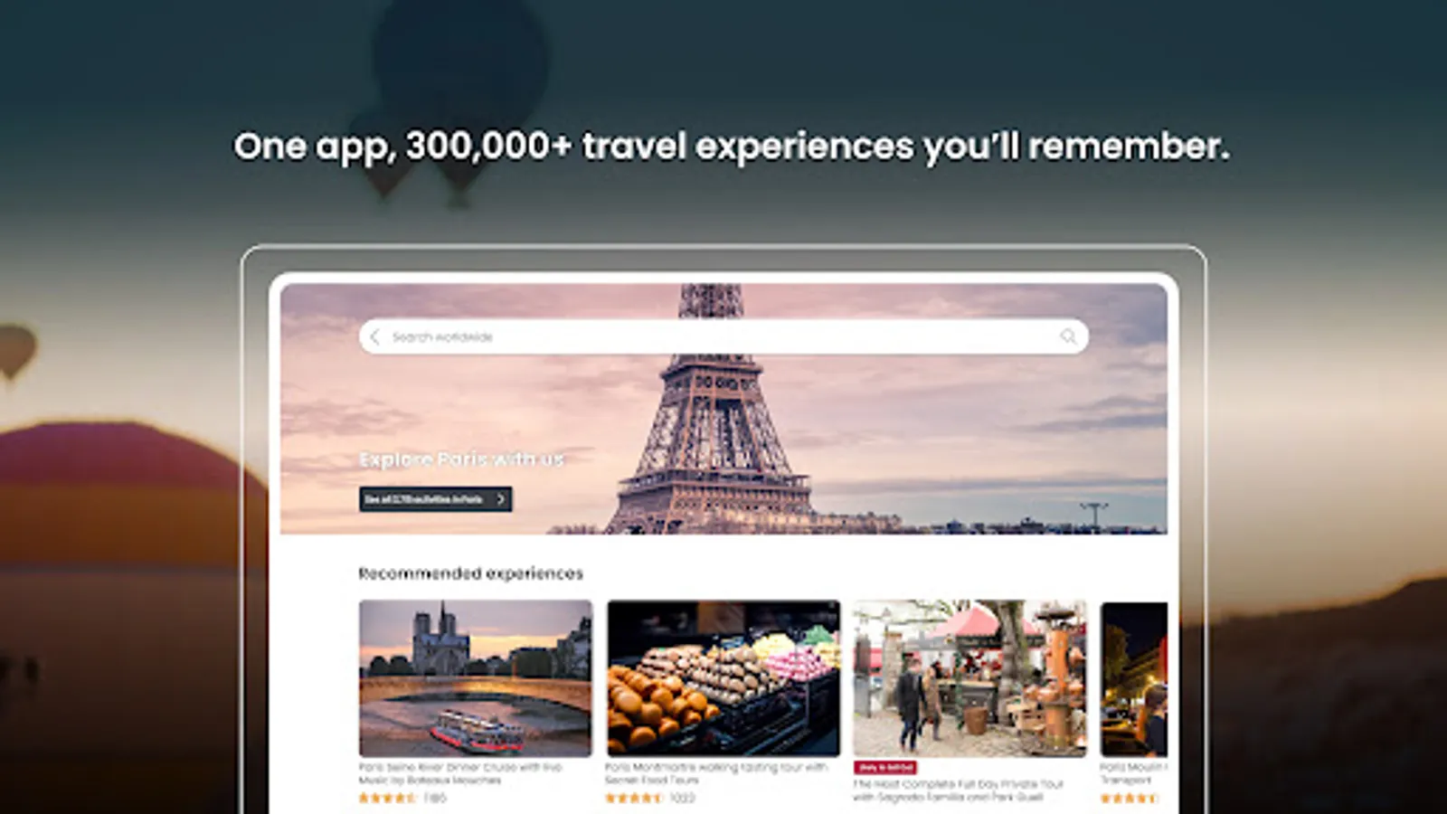 As the leading marketplace for tours and travel experiences, we believe that making memories is what travel is all about. And with over 300,000 tours and experiences at your fingertips—everything from simple activities to extreme adventures (and all the niche, interesting stuff in between)—you're guaranteed to make memories that will last a lifetime.