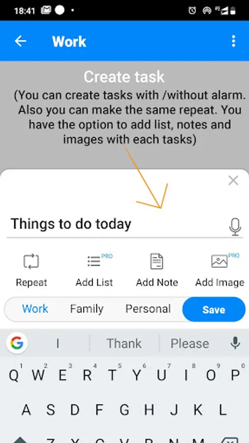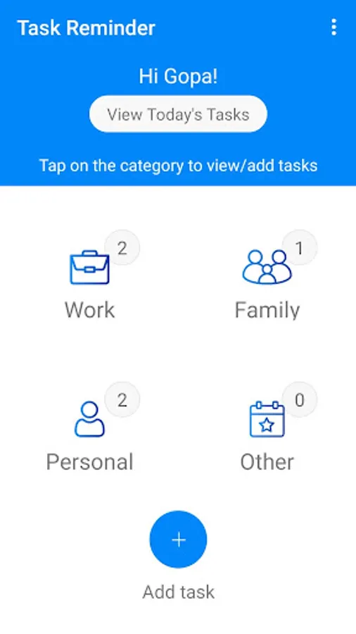 2. Tasks can be saved to Work, Family, Personal and Other categories for ease of management