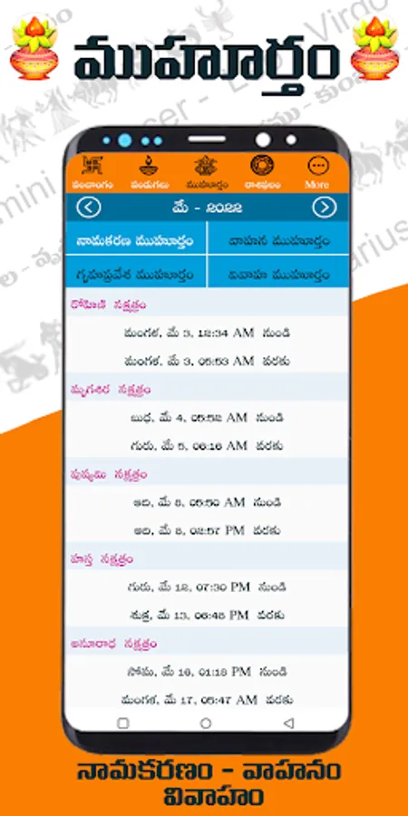 * Muhurtham Tab :- Read Auspicious time of Vivaha Muhurtham Namakarana