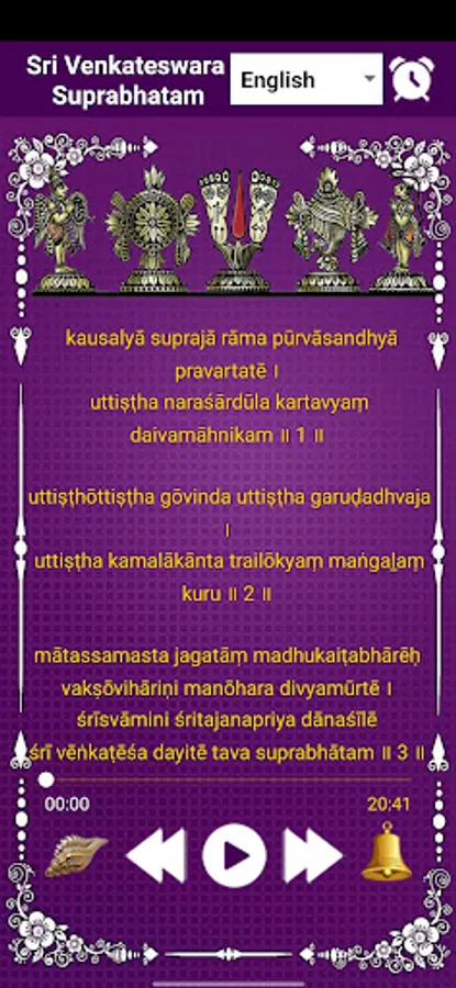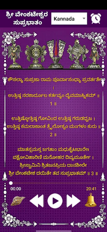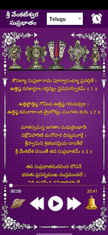 Sri Venkateshwara Swamy Suprabhatam lyric available in Hindi, Telugu, Tamil, Kannada, Malayalam and English