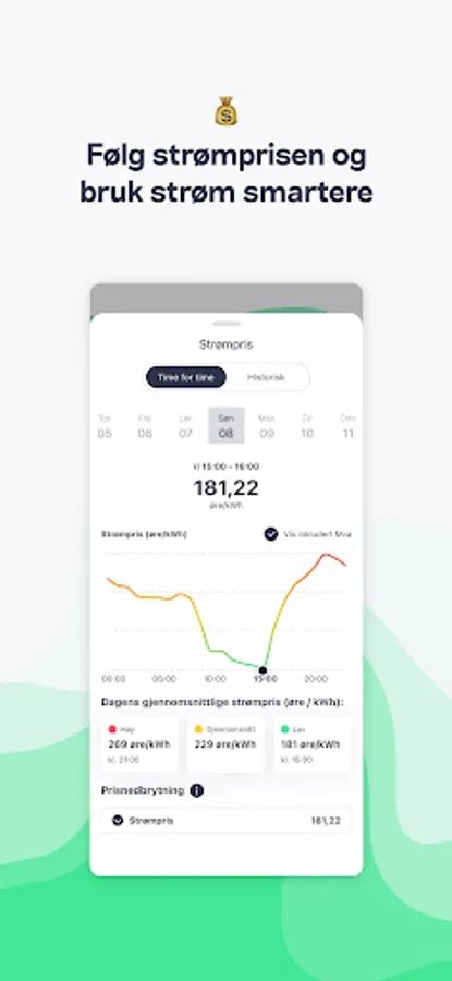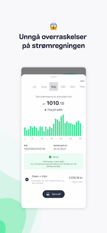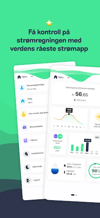 In the app you get a full overview of your power consumption. We show you your consumption in both kilowatt hours, kroner and øre. See what the electricity costs, how high the electricity bill will be and how your electricity consumption fluctuates throughout the day.