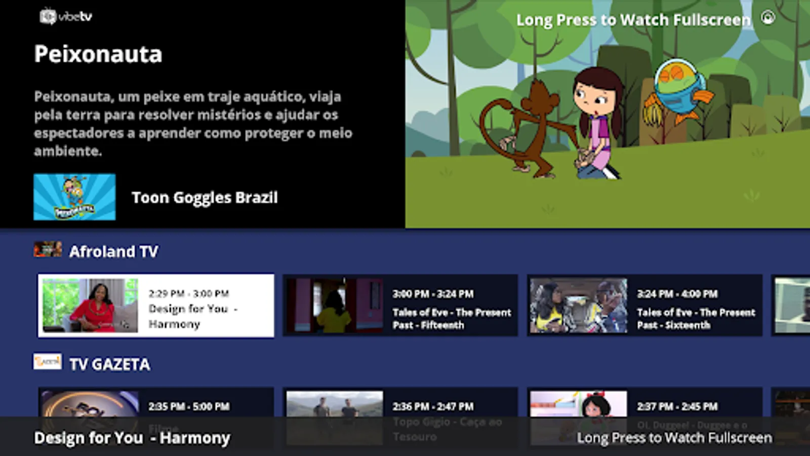 VibeTV brings diverse entertainment for the entire Brazilian family to enjoy the best of movies, series, sports, children's content, news, regional channels and much more.