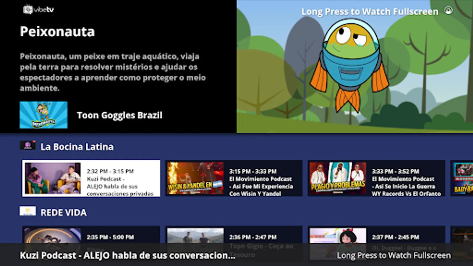 VibeTV brings diverse entertainment for the entire Brazilian family to enjoy the best of movies, series, sports, children's content, news, regional channels and much more.