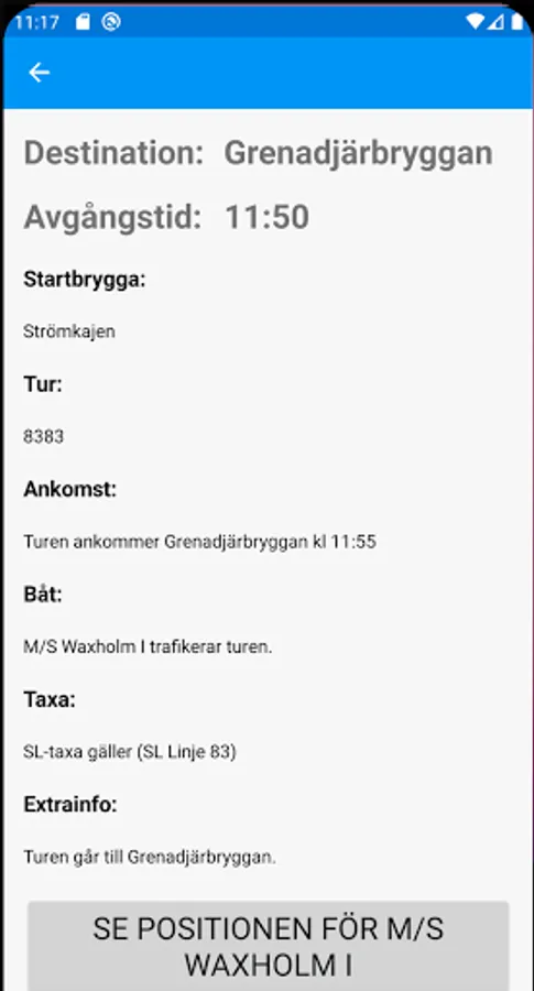 Viberö Vaxholmspendeln is a simple app for showing boat trips in the Vaxholm area with Waxholmsbolaget's boats. The app shows all departures with SL's commuter lines 83 and 83X as well as all other Waxholmsbolaget's trips that go to / from or via Vaxholm.