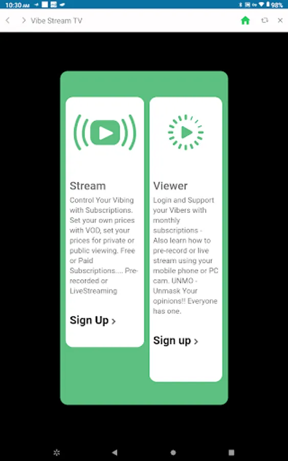 VibstreamTV believes in residual ownership.register with VibstreamTv you have more shared interest that comes to you .We provide you with all essential you need to become your own boss.You will not find a platform that gives more to its people. Have 10k subscriber or more subscribers whose would love to support you with the monthly subscription going to you ?its optional for your viewer to subscribe for free or support you monthly at a price you set for you audience. Yes we have that for everyone. The way it was intended to be!!
