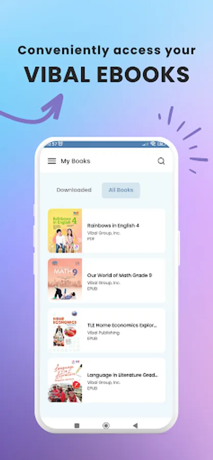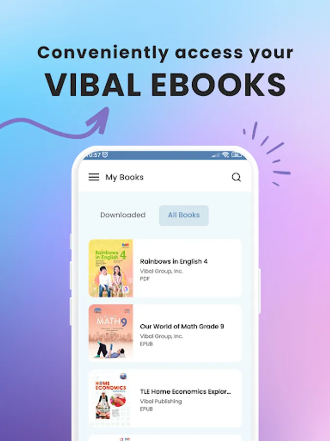 Vibe e-Reader app is a free reader for epub and PDF files that enables users to read Vibal ebooks anytime, anywhere.