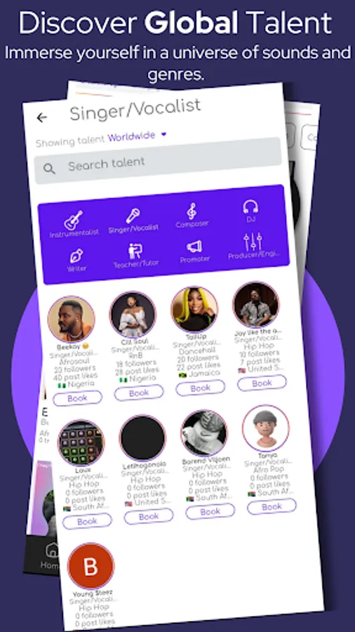 **Seamless Experience:** Vibey offers an intuitive user interface, allowing effortless navigation through the app. Effortlessly search for artists, tracks, gigs, albums, and potential collaborators. Customize your profile to reflect your unique musical identity.