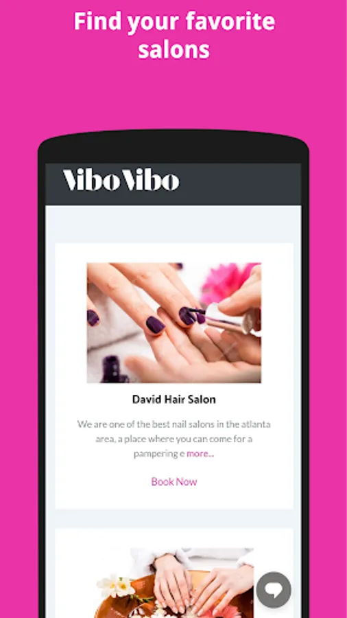 Looking for a quick and easy way to book your next nail, hair or spa treatment in Atlanta? Vibo Vibo is your one stop solution for booking and scheduling appointments from the convenience of your phone. Find the salon that offers the services you’re interested in, or use Vibo Vibo to book appointments at your favorite salon. Schedule an appointment in a few clicks, and receive text and email confirmations and reminders so you never forget an appointment again.
