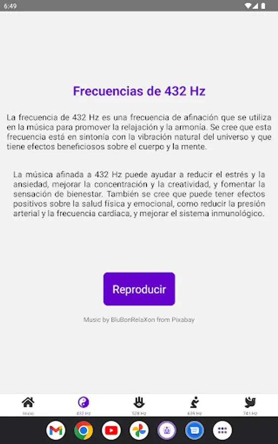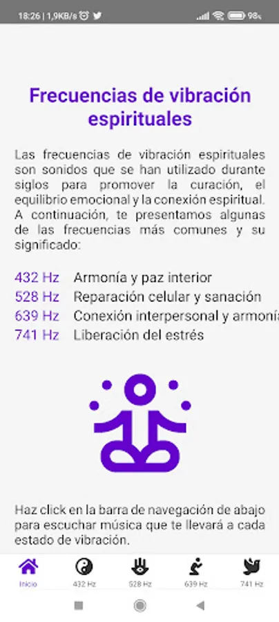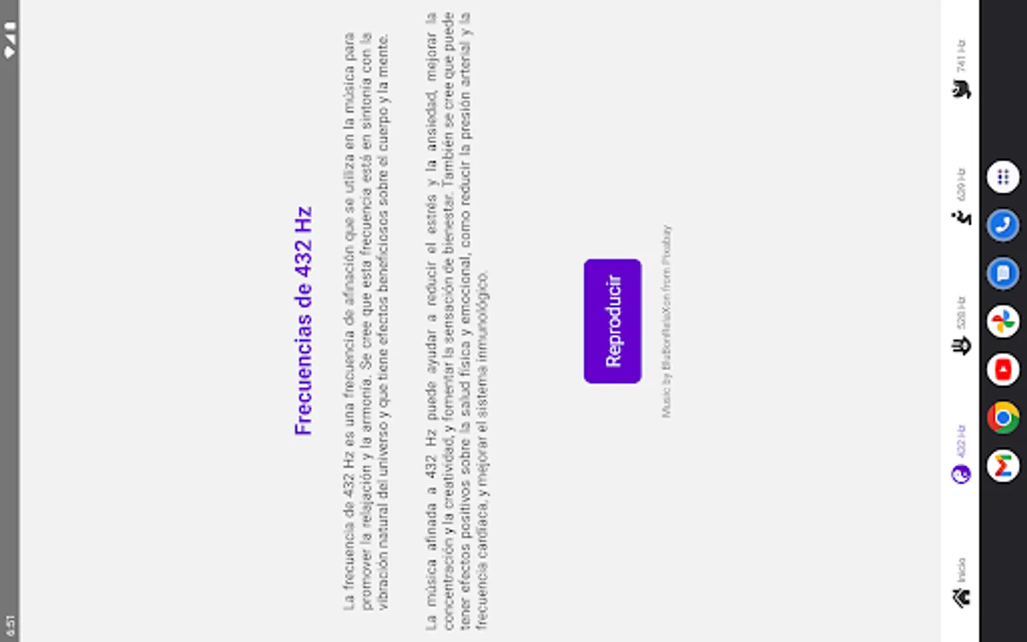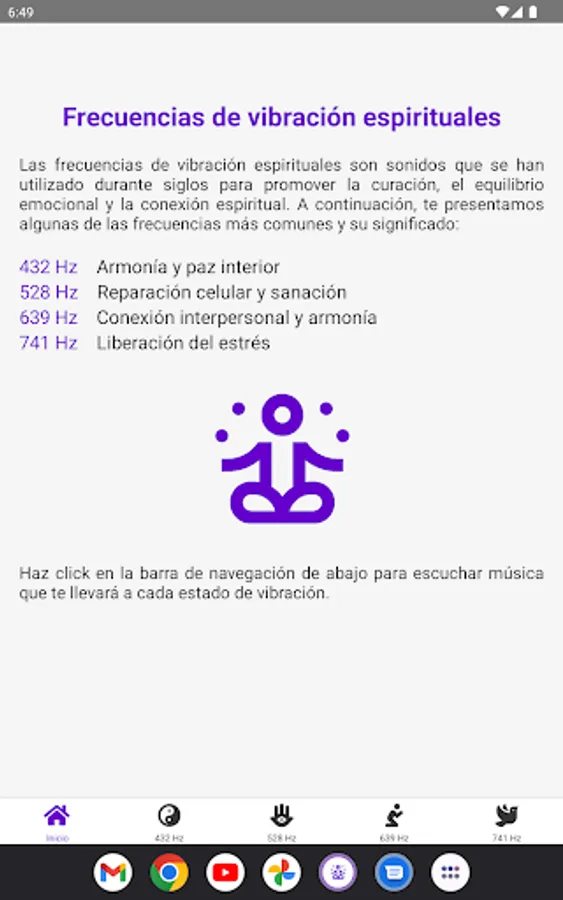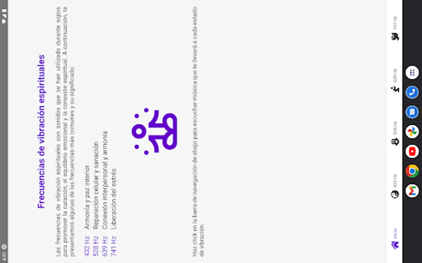 Welcome to Music to vibrate the Universe, the application that allows you to experience the power of music in spiritual frequencies. Our application offers you a selection of melodies that have been created with the purpose of harmonizing your body and mind.