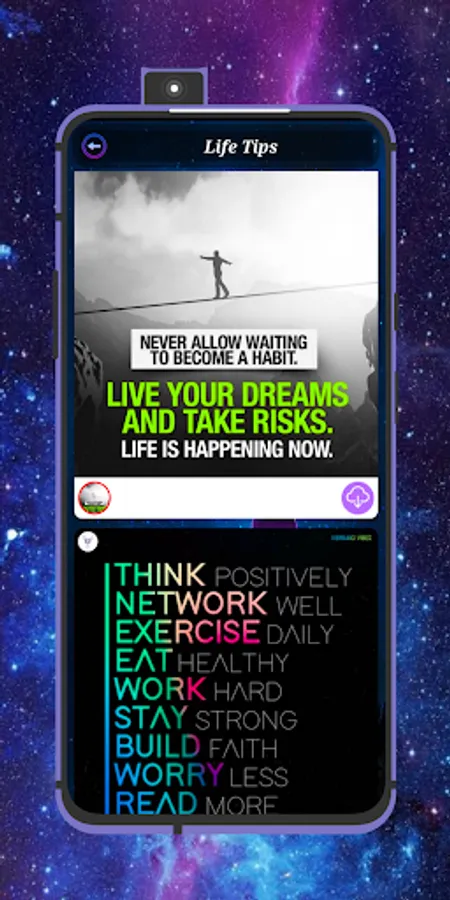 •Get daily quotes on every dimensions of life i.e 1.Health 2. Intellectual 3.Emotional 4. Character 5. Social 6. Love & Relationship 7. Parenting 8. Career 9. Financial 10. Spirituality.