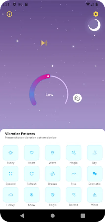 If you want to feel relaxation try contrasting vibration patterns. App will deliver strongest vibrations your gadget provides with various vibrating app melodies. Mobile massager includes pleasant sounds and 15 different vibrations with ability of vibrate