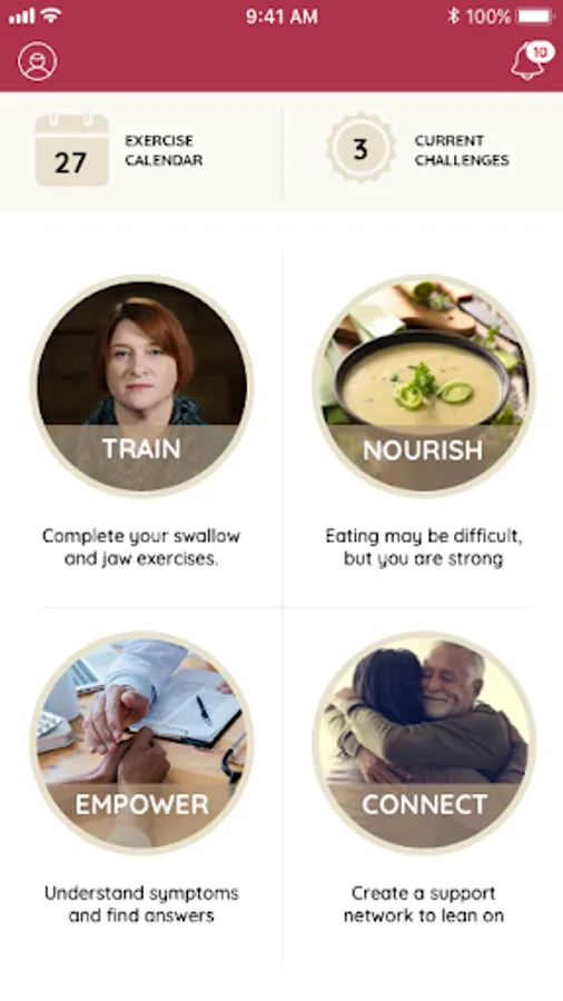 Track your completion of daily swallow and jaw exercises through a guided daily challenge. The intensity of each exercise is based on your symptoms to ensure the program is meeting your needs, abilities, and preferences.