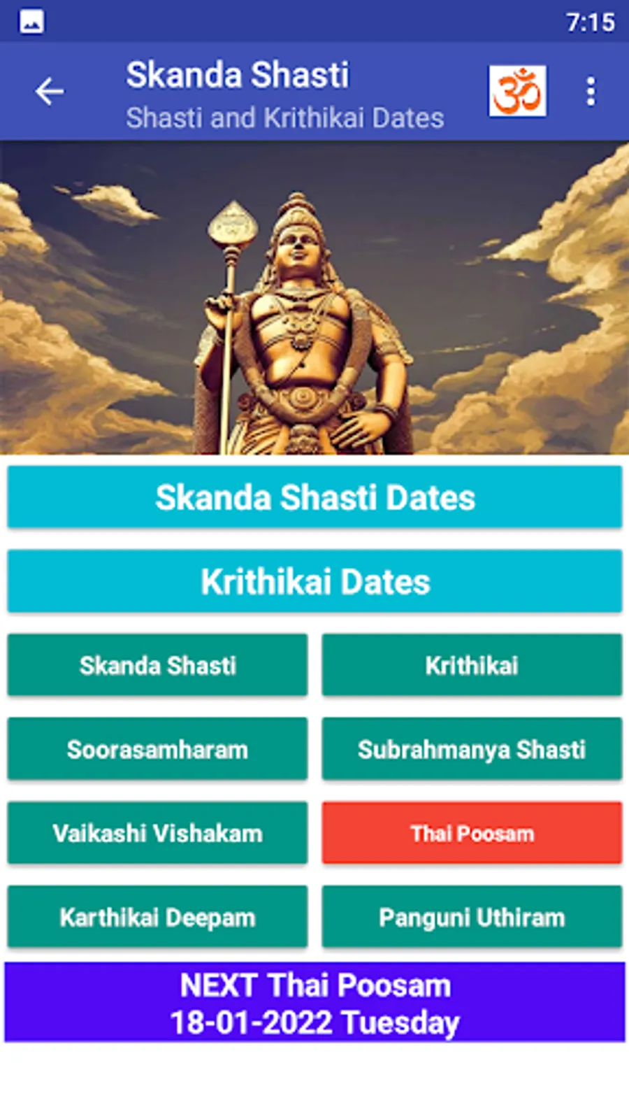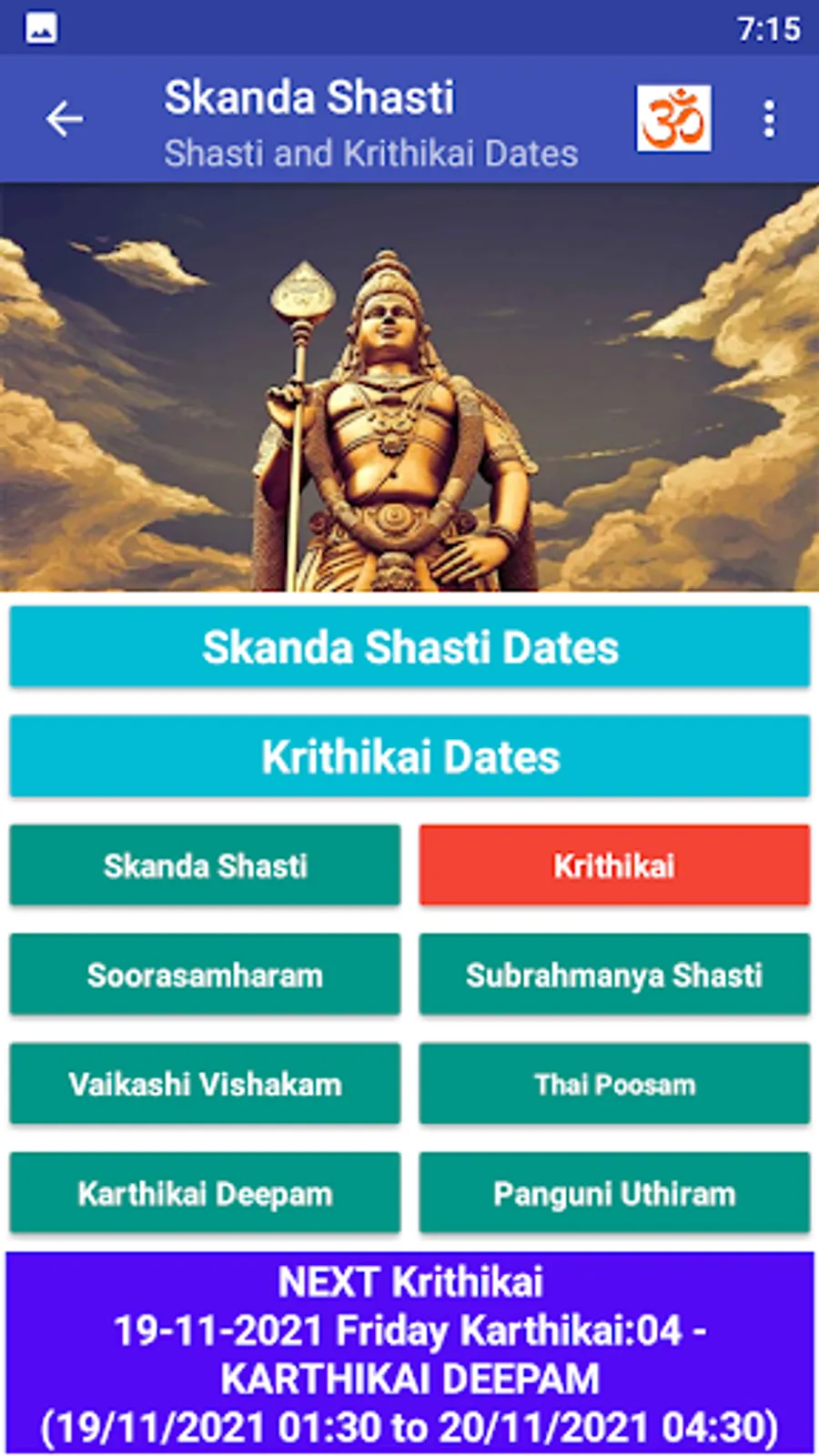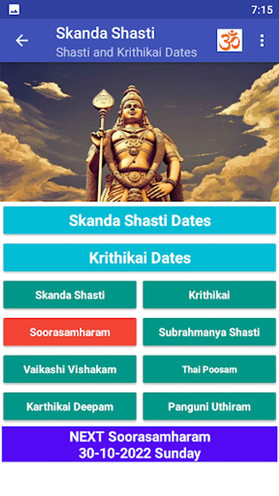 Soorasamharam, Skanda Shasti, Krithikai, Vaikashi Vishakam, Thai Poosam, Panguni Uthiram, Karthikai Deepam.