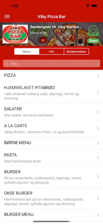 Bestil pizza, burger, pasta, m.m. med få tryk, nemt og hurtigt!