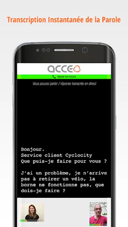 Speak directly to your interlocutor (and not by chat), in return, his words are written instantly on your screen by an Acceo operator.