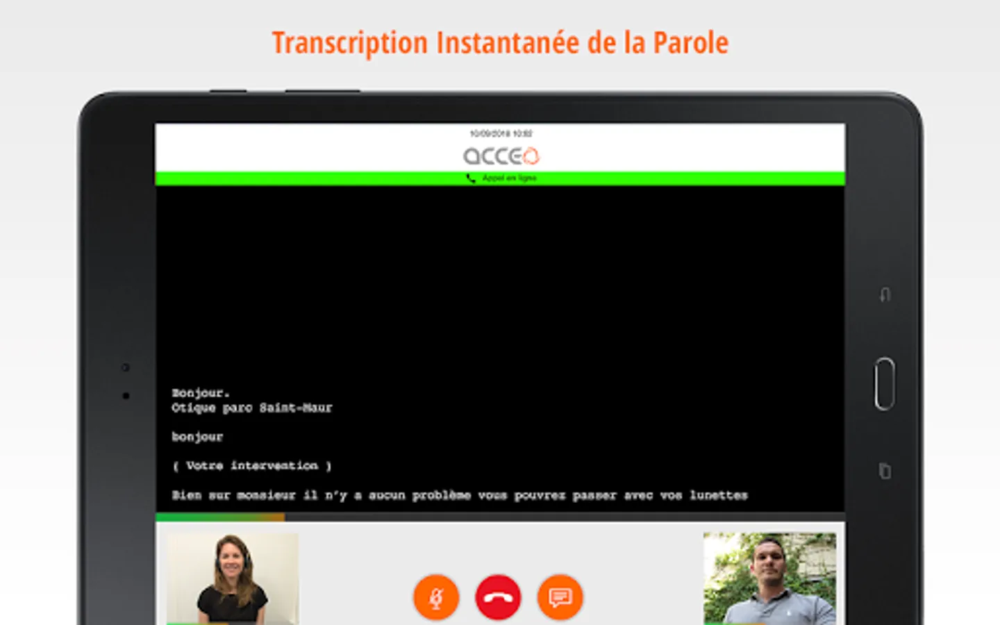Speak directly to your interlocutor (and not by chat), in return, his words are instantly coded on your screen by an Acceo operator.