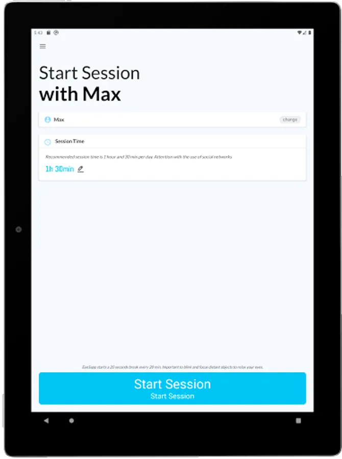 4 - Set the session time and let Eyesapp protect your family's eyes.