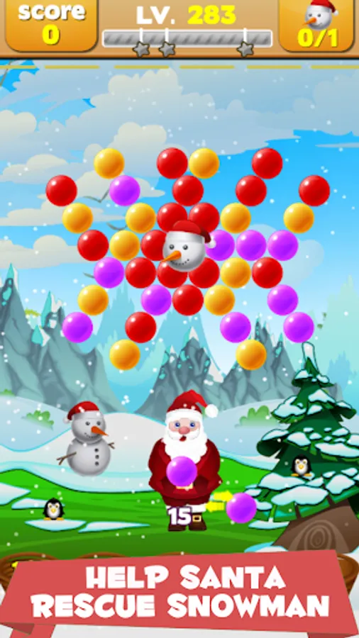 3. Clear all bubbles on the screen to collect snowman and solve the levels..