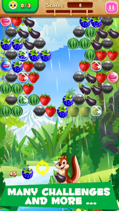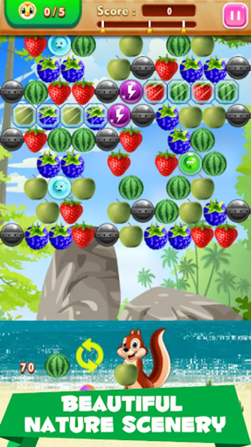 Bubble Fruits is a very juicy arcade game with beautiful scenery and fruits, fruits shooter is a wildly addictive match-3 shooting game.
