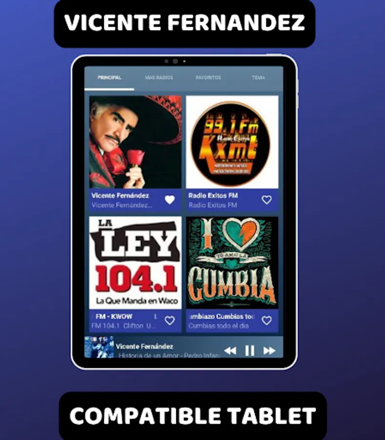 Vicente Fernández – Rancheras is a radio app that requires an internet connection.