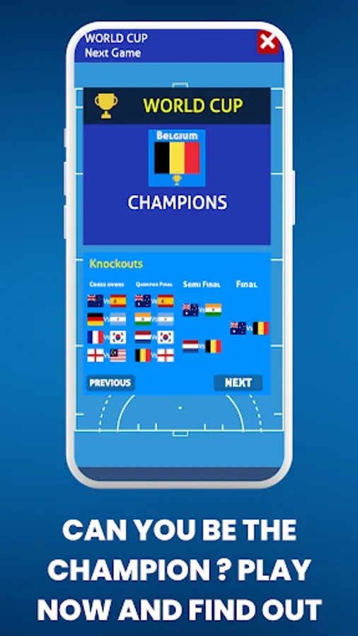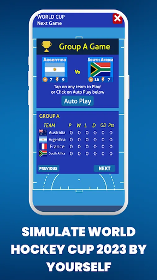In this game, you can play friendly hockey game between any of 40 teams. You can play a Hockey world cup 2023 and you can also create your own custom hockey world cup by selecting any 16 teams out of available 40 hockey teams.