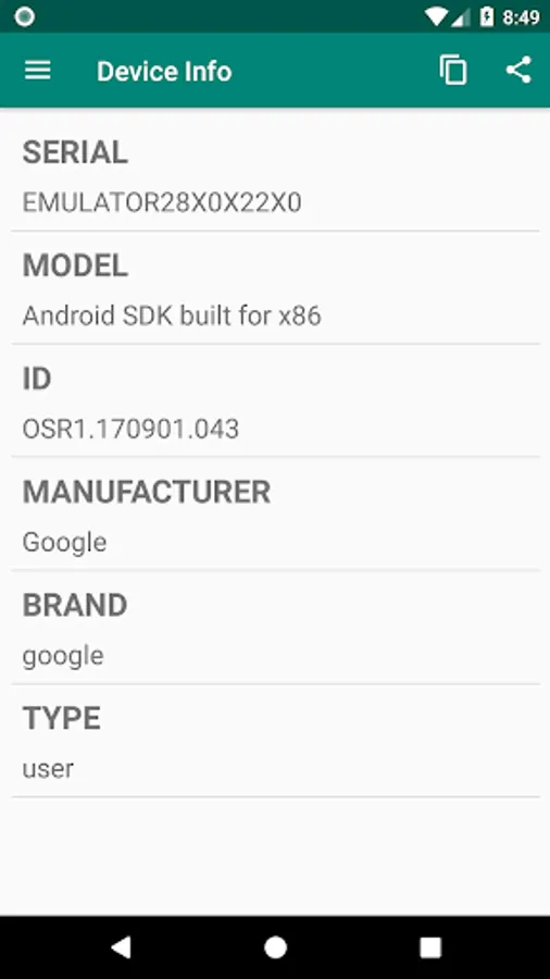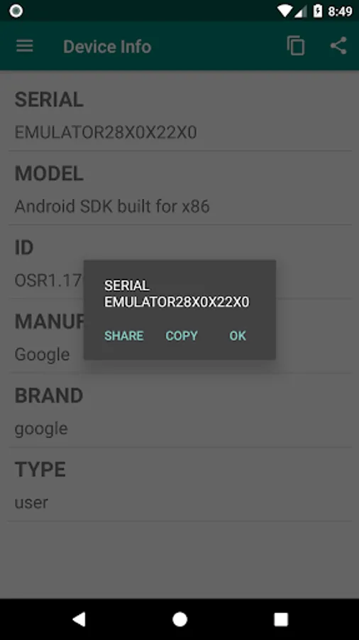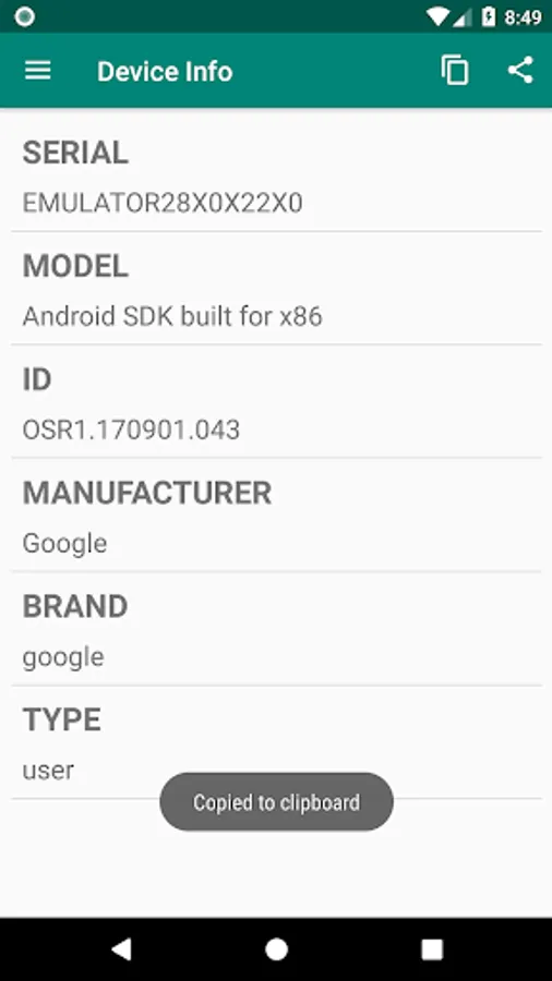 ★ Device Info can copy all the information to the clip board.