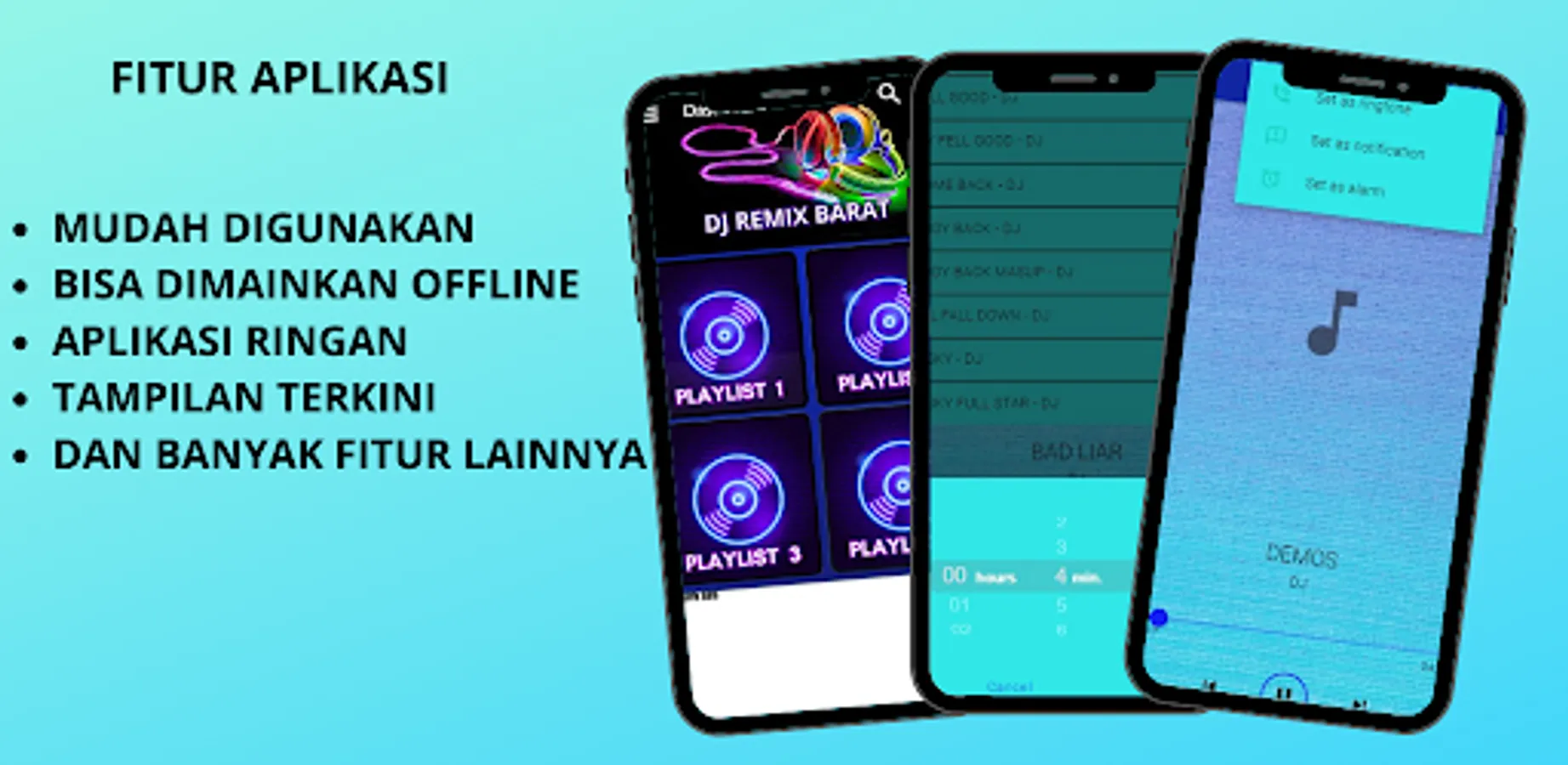 Download our DJ music app now and have an immersive experience in the world of western DJ music. Enjoy our superior features that are easy to use, don't overload RAM, can be set as an alarm and ringtone, equipped with a timer, and display the latest display and the latest playlist. With our application, your favorite DJ's music will always be at your fingertips.