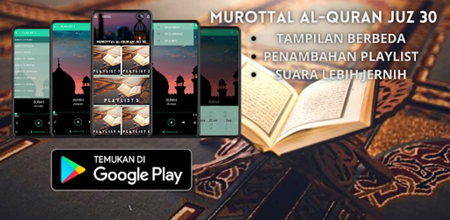With the "can be played in the background" feature, users can continue to listen to the Murotal Al-Qur'an while doing other activities on their cellphones. This is very useful for users who often do multitasking or don't want to be disturbed while listening to Murotal Al-Qur'an.