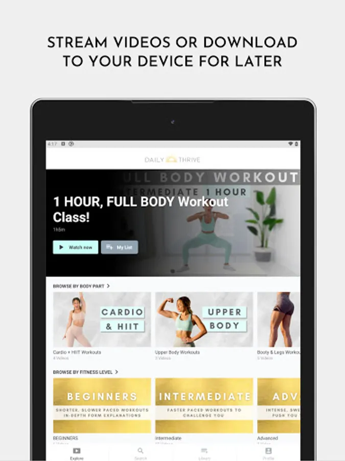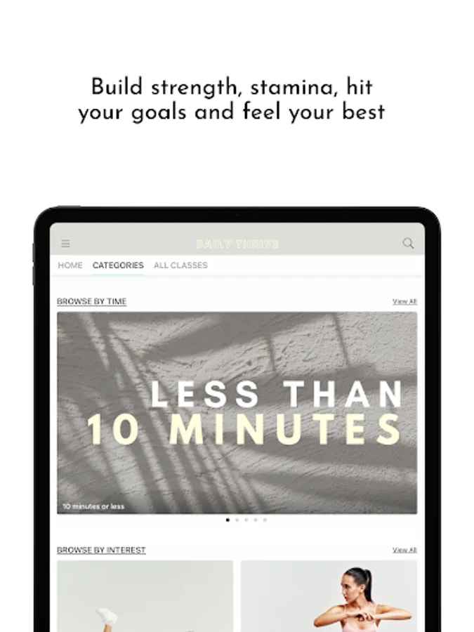 Every workout on Daily Thrive is a real-time, follow along workout with your coach, Vicky. You’ll never feel alone because your trainer will be on screen cheering you on the whole way! Together, you will sweat, laugh, struggle, be challenged, get stronger and grow.