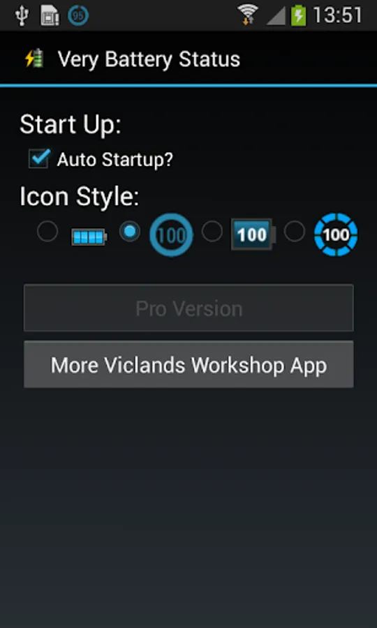 Very Battery Status has 2 icon style and 3 additional styles for Pro Version.