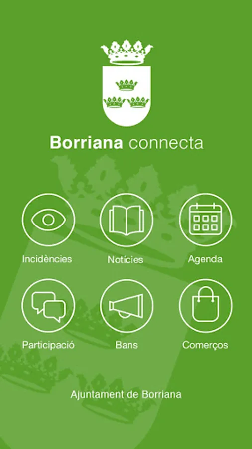 BORRIANA CONNECTA is an application of the municipality of Borriana, communication and incident management in urban infrastructure and citizen participation. It allows citizens of Borriana directly notify the municipality in real time, various types of incidents, faults or damage that may be found in the locality.