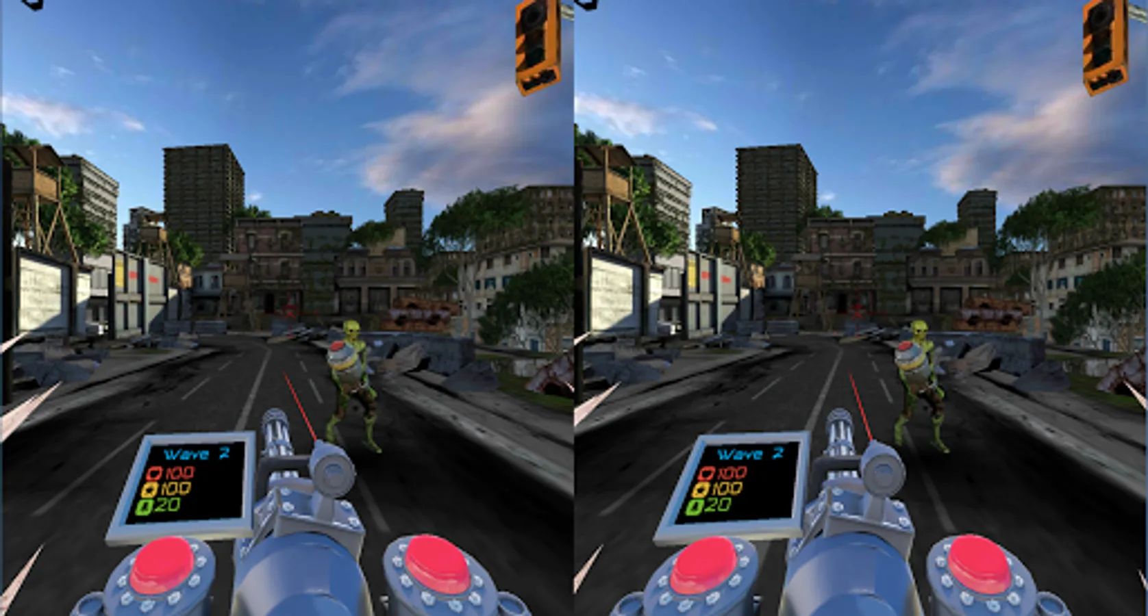 In this VR zombie shooter, you'll meet several kinds of zombies, traps that you can activate to kill them and the endeless amount of ammo. Will you survive the zombie apocalypse?