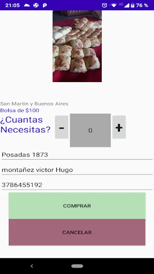 This application generates an order ticket to the chipá dealer.