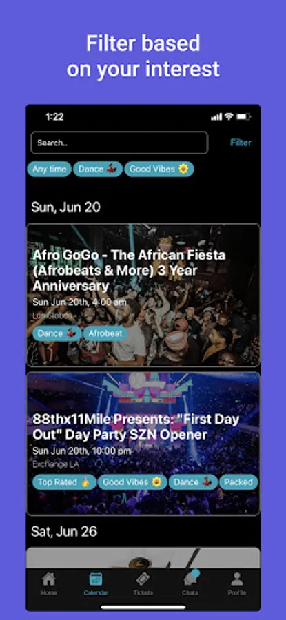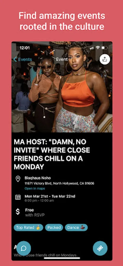 ETA lets you see what's happening at the best events around you. From there you can RSVP for an event and even chat with people already there! ETA gives you all the information you need in order for your next dope weekend adventure.
