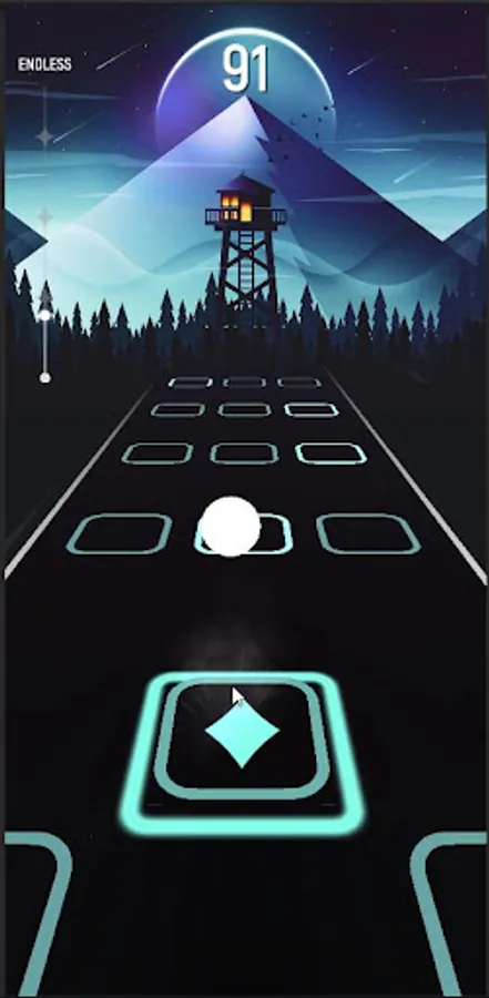 1. Touch, hold and drag to 2 sides to control the ball to jump on the tiles.